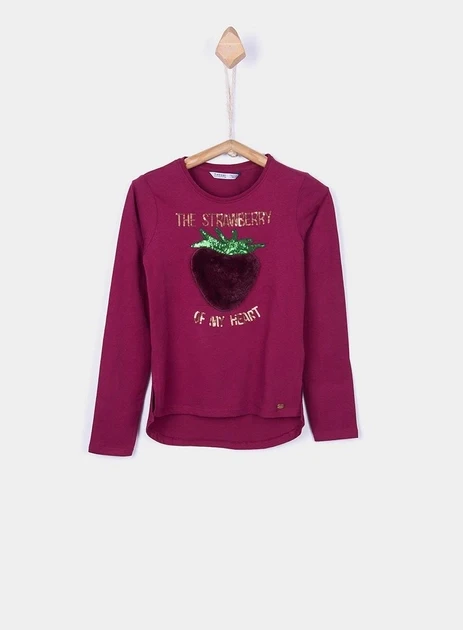 У компанії підключені електронні платежі. Тепер ви можете купити будь-який товар не покидаючи сайту.Лонгслів бордового кольору з пухнастою полуницею та паєтками для дівчаток. Модель вільного крою, круглою горловиною, довгими рукавами (лонгслів) та прикрашений пухнастою полуницею та паєтками. Реглан відмінно комбінується з брюками, джинсами та іншим одягом у стилі casual. Оригінальна, універсальна модель займе гідне місце у Вашому гардеробі!
