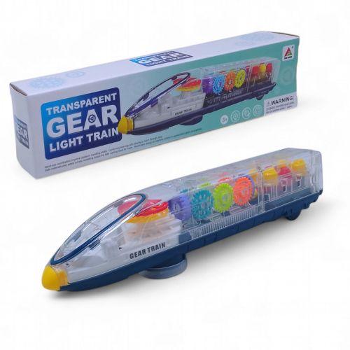 Потяг на батарейках, кольорові шестерні, світло і звук